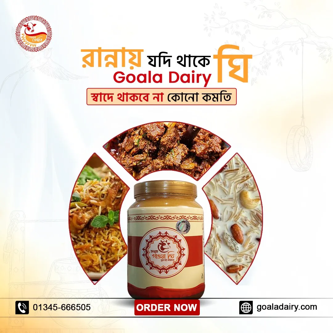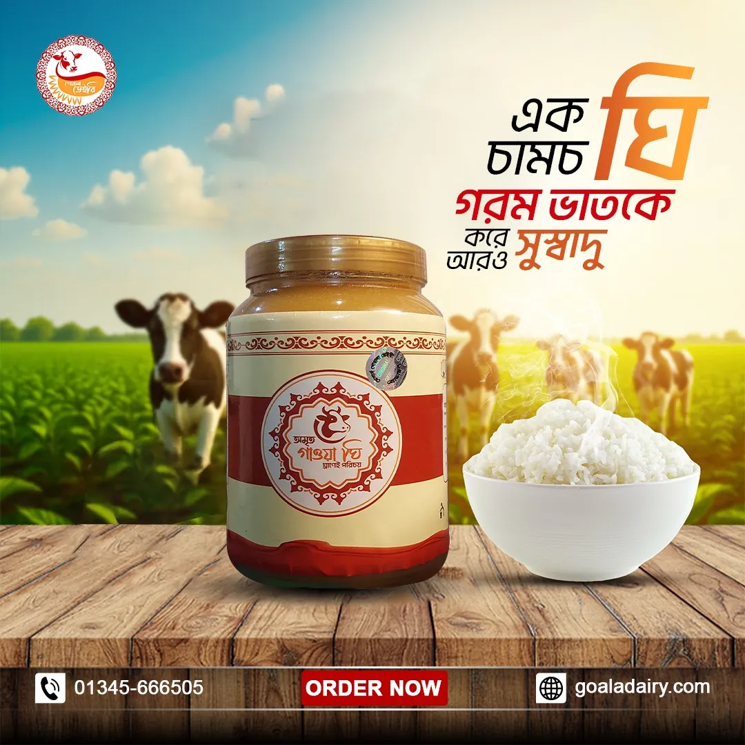 এই ঘি রান্না, ভাজি, পোলাও, হালুয়া কিংবা সরাসরি খাওয়ার জন্য উপযুক্ত। নিয়মিত ব্যবহারে শরীর পায় প্রয়োজনীয় শক্তি ও পুষ্টি।
