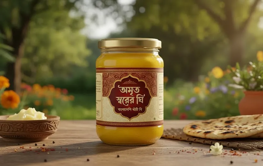 খাঁটি দুধের মাখন থেকে তৈরি অমৃত স্বরের ঘি